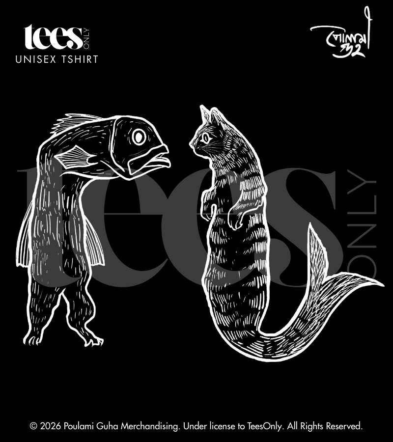 Introducing “Catfish | Poulami Guha” Premium Cotton T-Shirt — a surreal, playful fusion of identities where form and instinct seamlessly collide. Featuring an imaginative artwork of a fish within a cat’s body and a cat within a fish’s body, the design explores duality, curiosity, and the fluid nature of identity. Catfish blurs familiar boundaries, turning the unexpected into a visually engaging narrative.