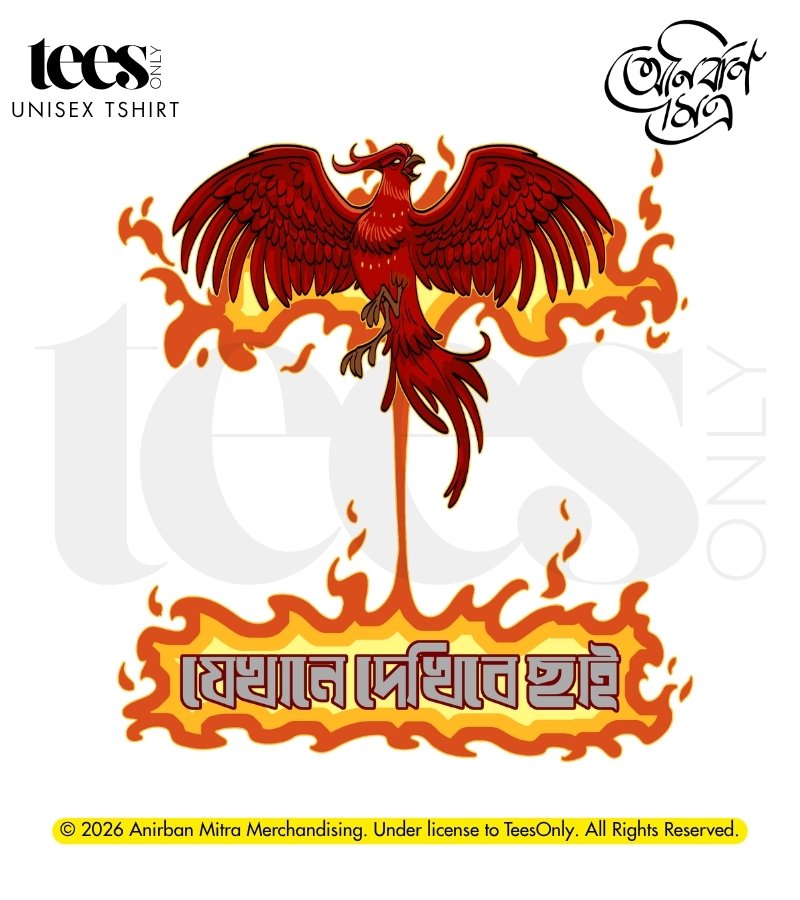 Introducing “Ashes | Anirban Mitra” — a powerful illustration rooted in the line “Jekhane Dekhibe Chhai”, reinterpreted through the imagery of a phoenix. The artwork captures destruction and renewal in a single frame, where ashes become the beginning of something new.