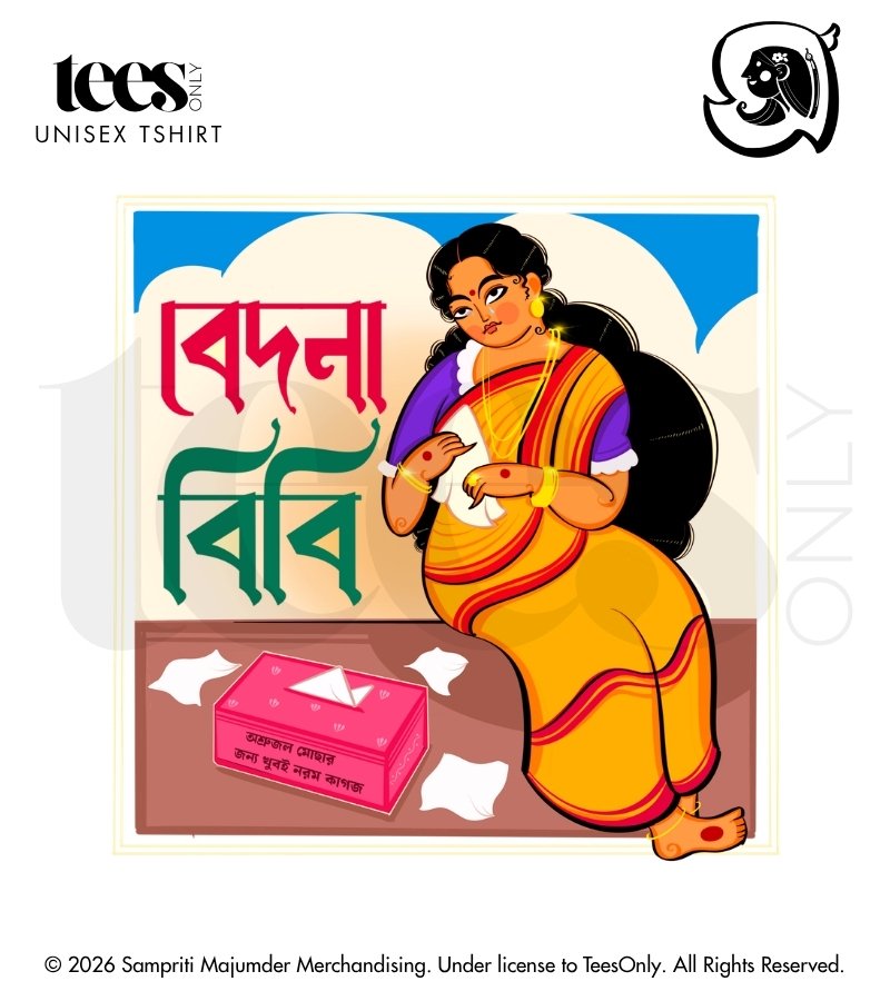 Introducing “Bedona Bibi | Sampriti Majumder” — an evocative illustration centered around the character of Bedona Bibi, blending emotion with cultural nuance. The artwork carries a sense of depth, where expression and presence speak louder than narrative.