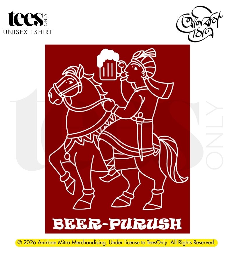 Introducing “Beer Purush | Anirban Mitra” — a witty, satirical illustration that plays on the dual meaning of “Bir Purush” and “Beer Purush.” The artwork blends cultural reference with wordplay, turning bravery into a tongue-in-cheek take on indulgence.