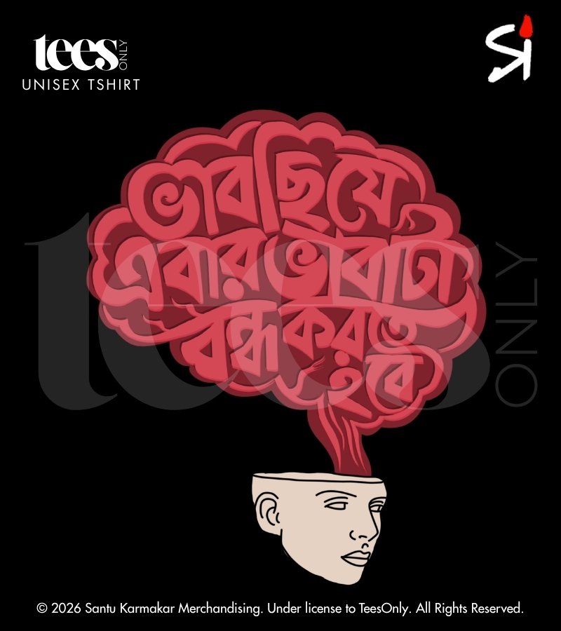 Introducing “Bhabona | Santu Karmakar” — a self-aware, introspective illustration built around a familiar loop of thought. The artwork captures the irony of overthinking, where even the decision to stop thinking becomes another thought.