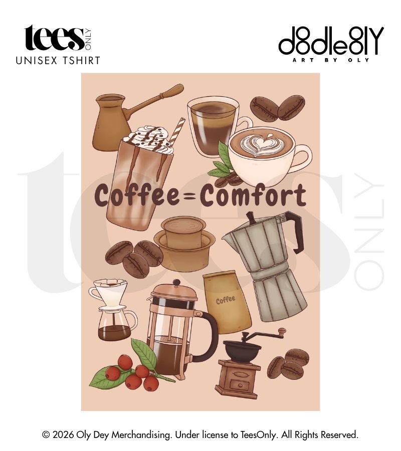 Introducing “Coffee Comfort | Oly Dey” — a warm, cozy illustration inspired by the quiet comfort found in a cup of coffee. Built around familiar, feel-good elements, the design brings together playful coffee-themed visuals that instantly evoke a sense of ease and relaxation.