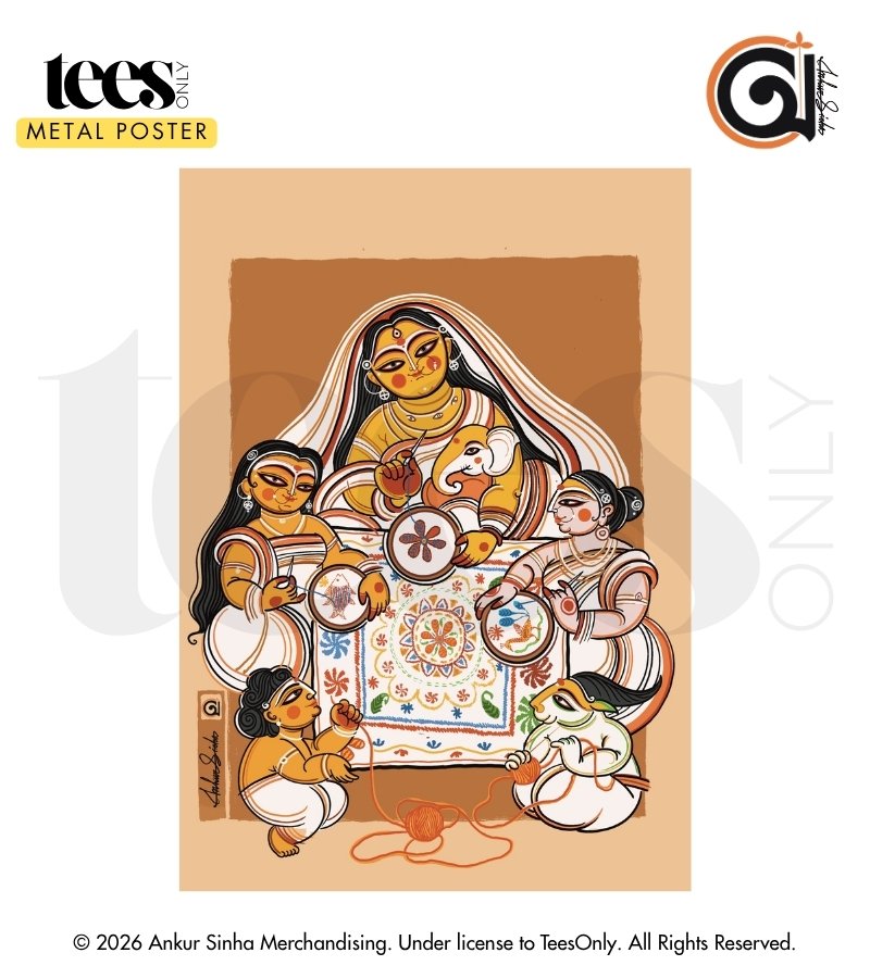Introducing “Divine Family | Ankur Sinha” — a metal poster inspired by Maa Durga and her children, reimagined in a tender, childlike form. This interpretation softens the grandeur of the divine into a moment of warmth, where शक्ति takes on a nurturing presence surrounded by innocence and quiet joy.