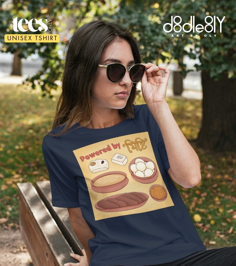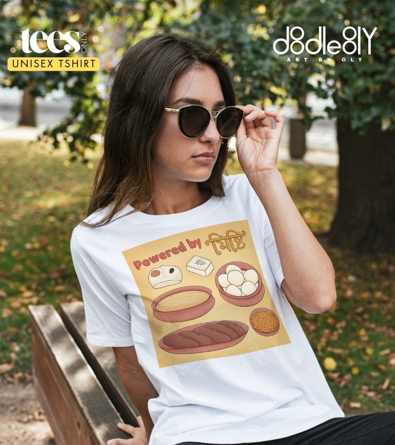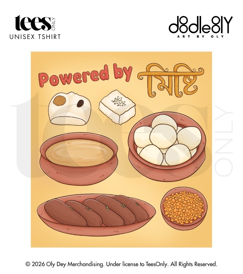 Introducing “Mishti Powered | Oly Dey” — a vibrant, playful illustration inspired by the irresistible world of Bengali sweets. Bursting with charm, the design brings together delightful mishti-inspired elements that feel both nostalgic and joyfully indulgent.