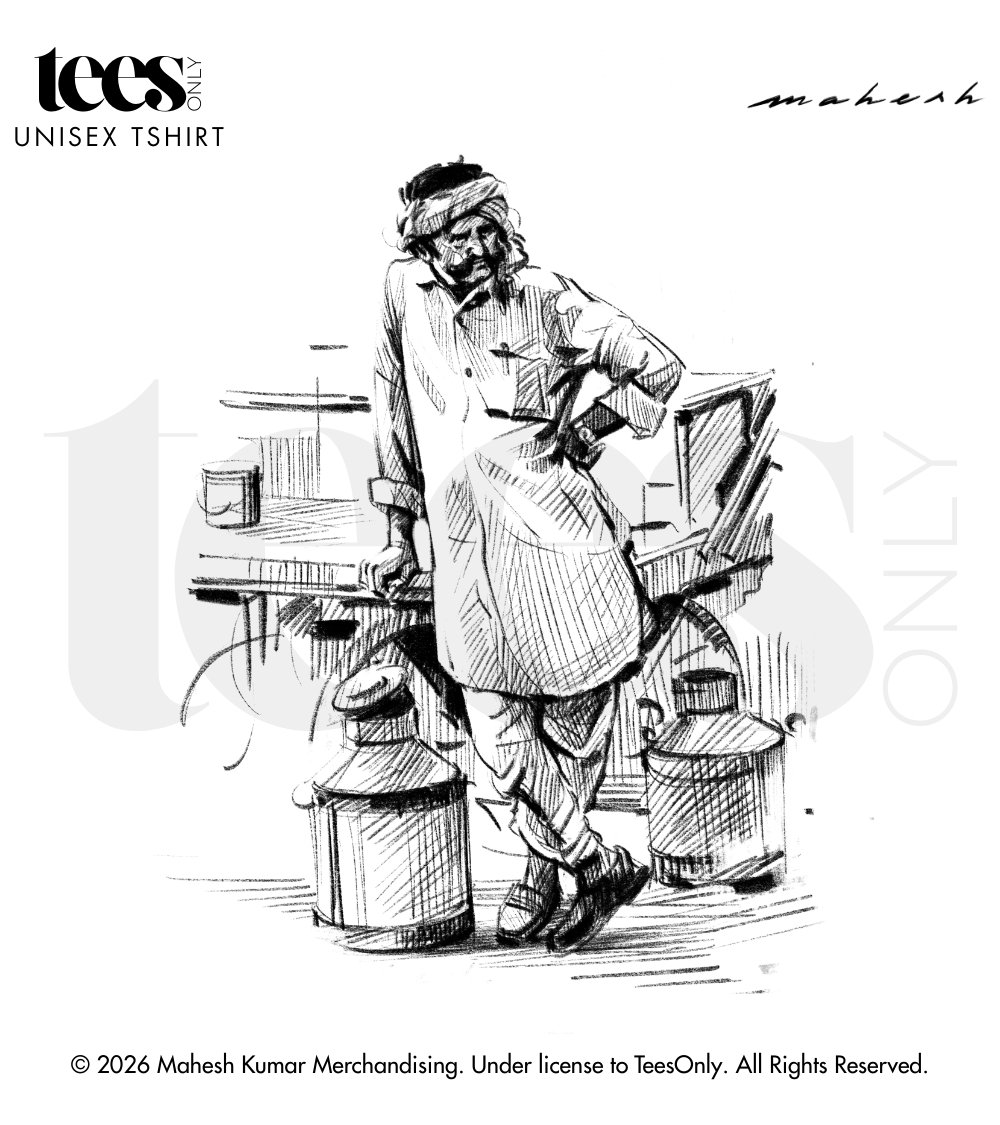 Introducing “The Cans | Mahesh Kumar” — a serene illustration inspired by the quiet rhythm of everyday life. Featuring an Indian milkman carrying his cans of milk, the artwork reflects a moment of simplicity rooted in routine, work, and dignity.